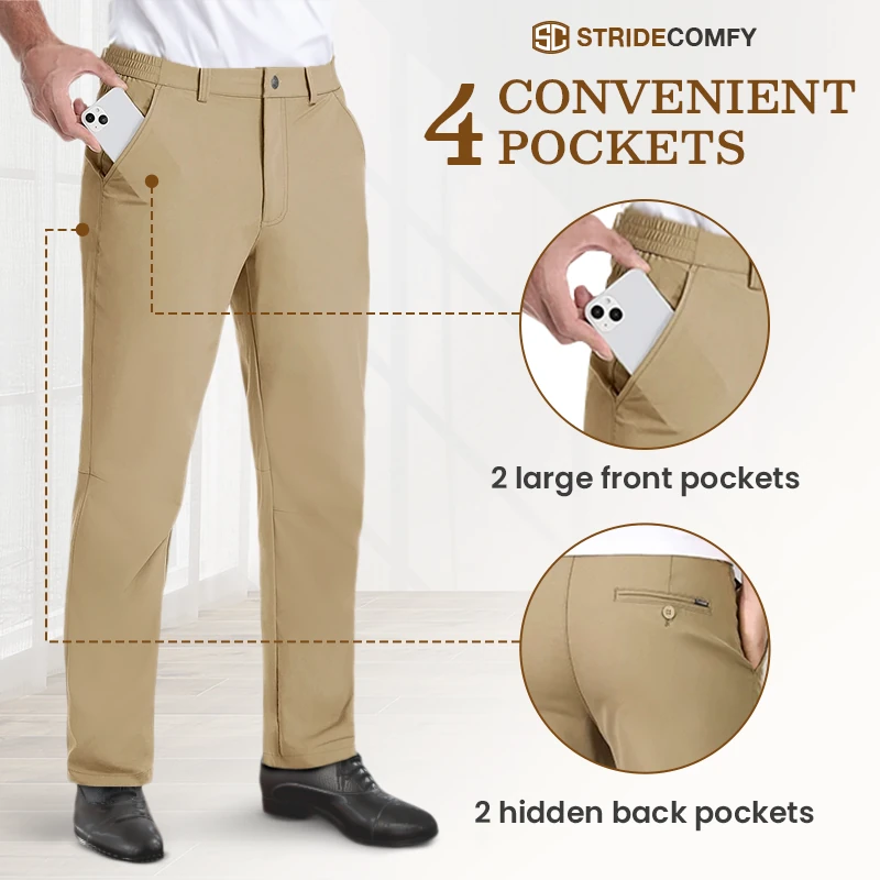 The elastic waistband comes with belt loops so you have multiple fit options, StrideComfy effortlessly fits any outfit and occasion!